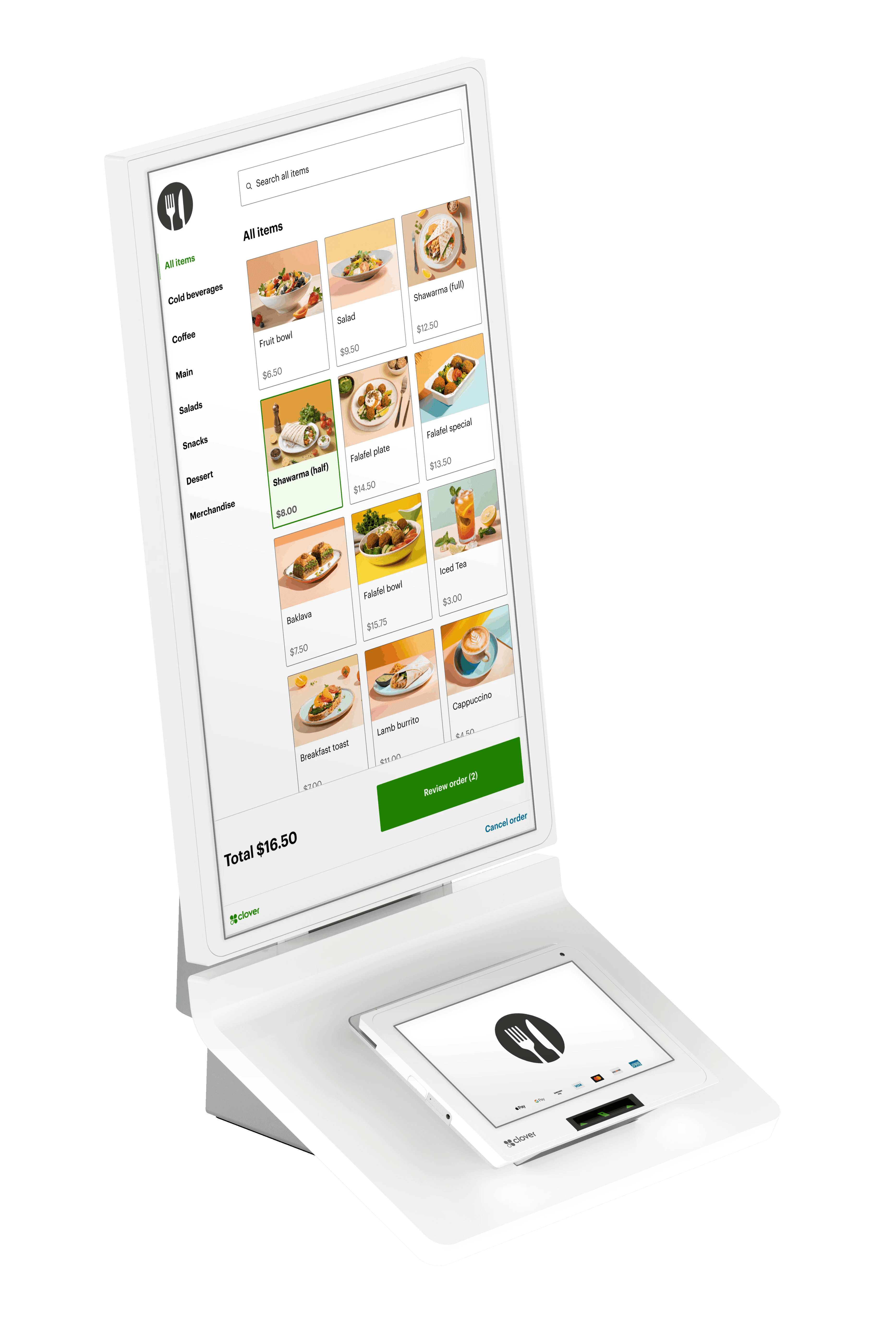 Network-connected (receives orders from all Clover devices)